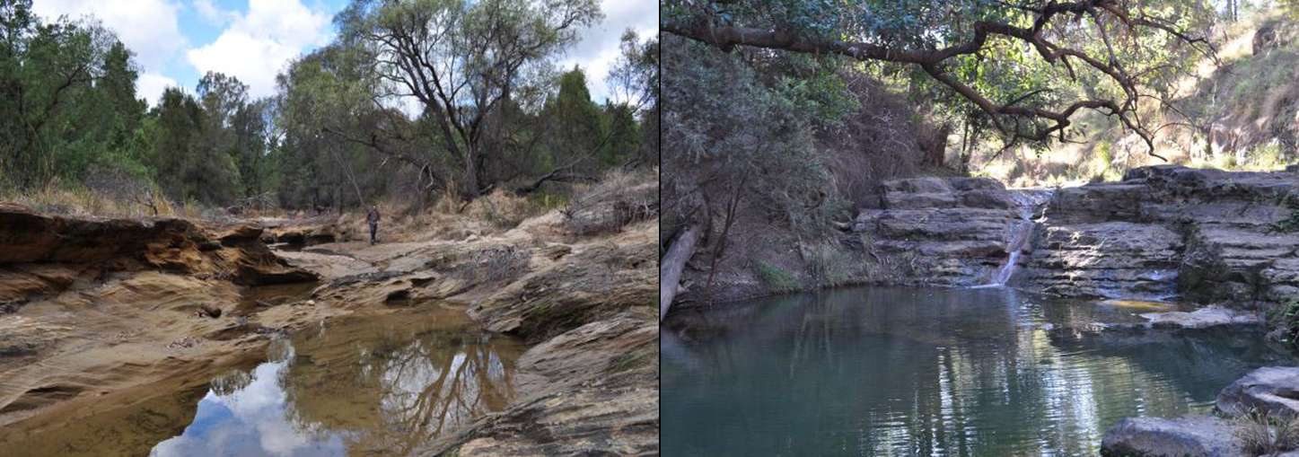 Type 3 wetlands generally occur within active watercourses on exposed sandstone bedding planes. The wetlands have minor substrates, with the wetland soil forming through the accumulation of riverine sediment or bed sands, rather than exclusive development of wetland soil over time. The wetlands receive groundwater contributions from both regional and local groundwater systems and are predominantly actively discharging wetlands, with little soil water storage potential or evapotranspiration demand. The wetlands contain only minor wetland vegetation (due to lack of soil substrate).