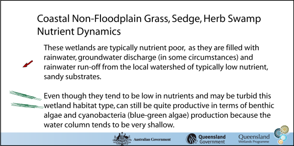 Coastal and subcoastal non-floodplain grass sedge and herb swampCoastal and subcoastal non-floodplain grass sedge and herb swamp – Nutrient dynamicsClick on elements of the model or select from the tabs below