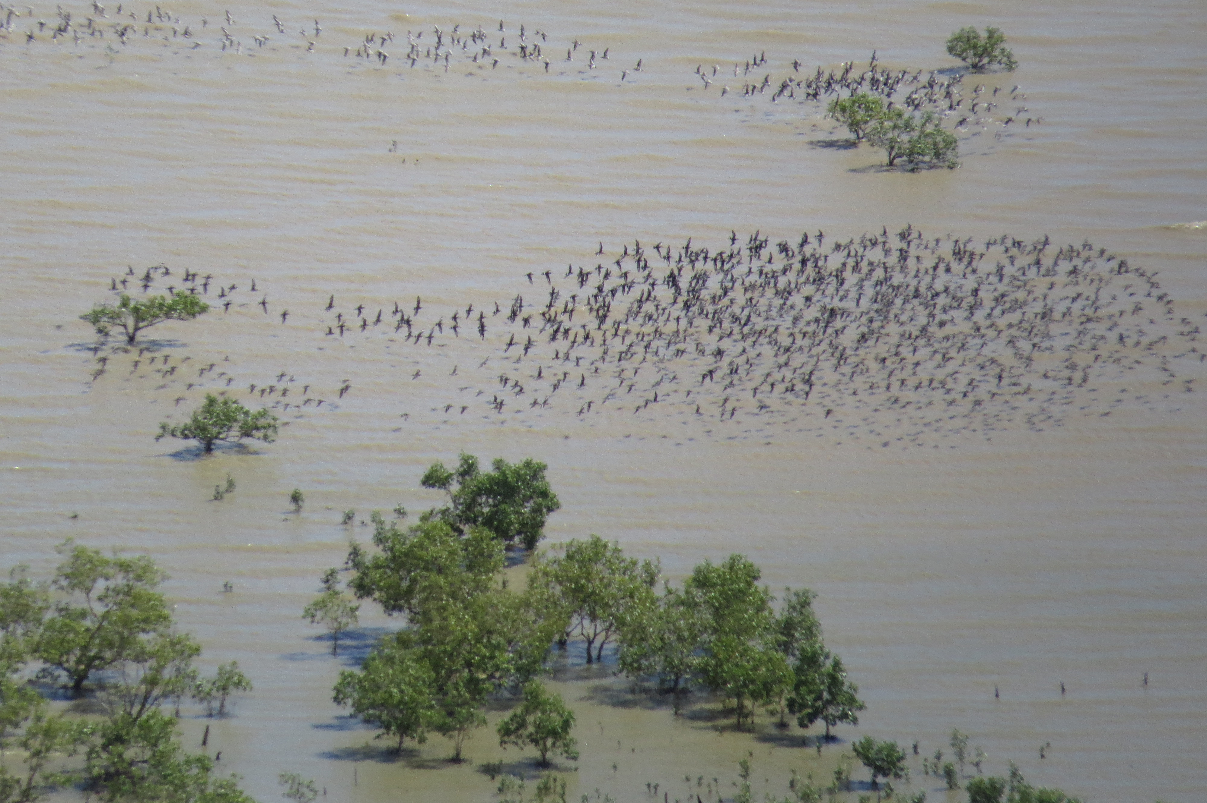 Shorebirds in the south east Gulf of Carpentaria roost on beach ridges, muddy shores, or behind mangroves on partially flooded claypans. There are many roost sites available where the height of the tide, as well as prevailing winds, determines which roost sites will be used at any one time. High numbers of shorebirds can occur between the Nassau River and west of Tarrant Point. Shorebird density is highest within 30 km to the north of Karumba. Parts of the coastline in this region, are used more intensively in some seasons than in others. For example, the coastline to the west of Gore Point near Burketown has a high density of great knot and red knot during the period of southward migration. To the east of Gore Point, the densities of black-tailed godwit, common greenshank and sharp-tailed sandpiper are at a peak later in the year, prior to the wet season. The coastal shorebird community is composed of mostly migratory species. In winter, only about 10% of birds are resident shorebirds, consisting mostly of Australian pied oystercatcher, black-winged stilt and red-capped plover. The masked lapwing, black-winged stilt and red-necked avocet also have significant sub-coastal populations. The region is important for shorebirds not making the northward migration e.g. young birds or non-breeding adults that either stay in the area, or arrive from farther south. Winter numbers of all shorebirds is as much as 30% of the numbers in the summer. The great knot and red knot contributes over half the total number of shorebirds for the region. Greenshank, marsh sandpiper and sharp-tailed sandpiper are common. These species also use sub-coastal habitats after the beginning of highly seasonal rainfall in the region. Red-necked stint are common over winter months and during the latter half of the year prior to the wet season when they move to southern and eastern parts of Australia. In April, additional red knots arrive from New Zealand as they migrate north. The importance of the south east Gulf of Carpentaria for shorebirds was highlighted by the addition of two sites to the international East Asian—Australasian Flyway Partnership Site Network. Additional informationIndigenous rangers in the Gulf of Carpentaria monitor shorebirds in the region. AcknowledgementsThis information has been compiled by the Queensland Wader Study Group with input from the Queensland Parks and Wildlife Service, researchers and volunteers (from Australasian Wader Study Group, Birds Queensland, the Port Curtis Wader Study Group, the Wildlife Preservation Society of Queensland, Birds Australia and the Mackay Conservation Group). These pages are primarily sourced from the report prepared by the Queensland Ornithological Society Inc for the Queensland Department of Environment and Heritage Protection and the Australian Heritage Committee, Driscoll, P. V. 1995. Survey of wader and waterbird communities along the central Queensland coast. Please note the information above is based on the best available at the time of publication. Last updated: 2 February 2021 This page should be cited as: Department of Environment, Science and Innovation, Queensland (2021) Shorebirds South East Gulf of Carpentaria, WetlandInfo website, accessed 8 May 2025. Available at: https://wetlandinfo.des.qld.gov.au/wetlands/ecology/components/biota/fauna/fauna-taxon/birds/shore-bird/migratory-qld/south-east-gulf-carpentaria.html |