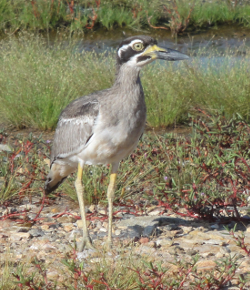 Our WetlandInfo feature bird is Esacus magnirostris, commonly known as the beach stone-curlew or beach thick-knee. They are usually found in pairs on the deserted beaches of northern Australia. They use all types of beaches but are easily disturbed so there are many areas where this bird is not found. They nest in a shallow scrape in the sand and once they establish a site they tend to be faithful to it.